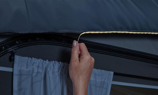 Die Lichtbänder werden mit Klebeband an den Airtubes Ihres Ventura Air Vorzelts oder mit Tape am Gestänge Ihres Zelts oder Vorzelts angebracht. Kombinieren Sie das LED-Lichtband mit einer Verlängerung oder einem T-Kabel und passen Sie damit die Beleuchtung an Ihre persönlichen Wünsche an. Die Lichtbänder können das gesamte Zelt erhellen oder mit dem Isabella LED-Lichtdämpfer eine gemütliche, stimmungsvolle Atmosphäre erzeugen.