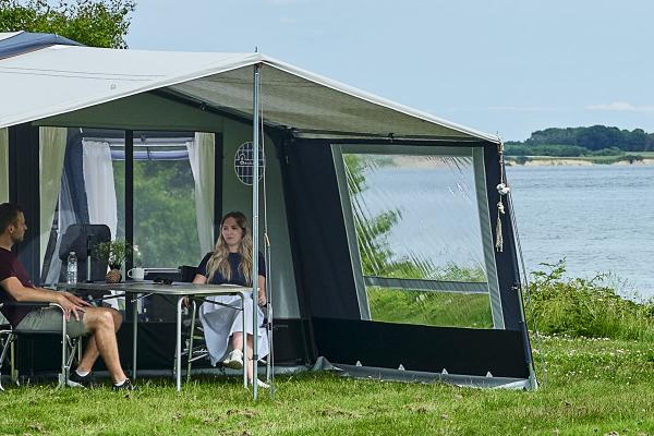 Støvsug eller børst teltet af, når det er tørt. Efterfølgende aftørres med en fugtig klud.