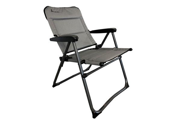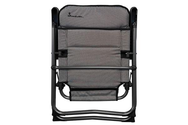 The seat is padded with 1.5 cm of foam and upholstered with durable polyester with a PVC coating, providing great sitting comfort and easy maintenance. The powder-coated aluminium frame (Ø25 mm) makes the chair stable yet easy to handle and fold away. The Nanna chair is available in Light Grey, a colour that suits most camping settings with its simple and modern look.