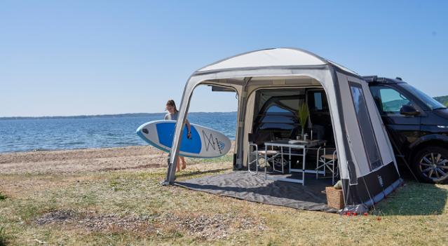 Buddy offers plenty of options for ventilation. For example, you can lower the windows and create a veranda using the supplied veranda pole. In addition, Buddy has integrated top ventilation and mosquito nets in the side panels, as well as foam padding at the vehicle end to ensure a tight fit.