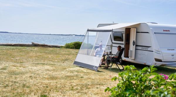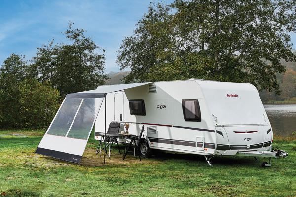 Vacuum or brush awning off when it is dry. Subsequently, wipe with a damp cloth.