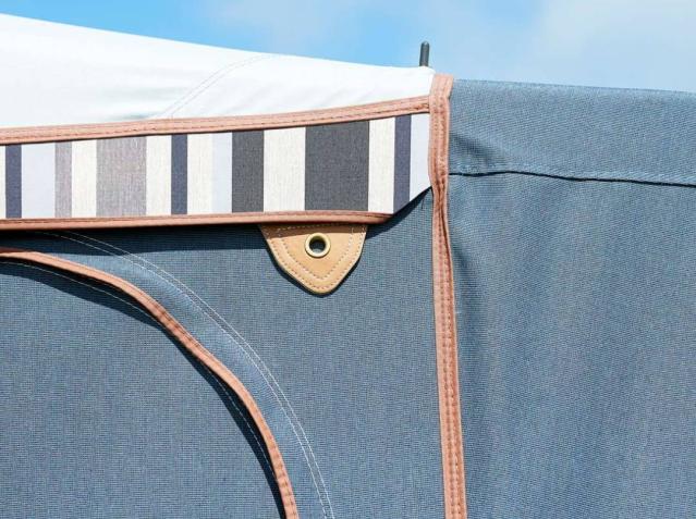 Il tessuto di tutte le tende Isabella è realizzato con il materiale Isacryl di Isabella, che è impregnato dappertutto, garantendo un alto livello di impermeabilità e assicurando che l'acqua piovana “rimbalzi” sulla superficie.