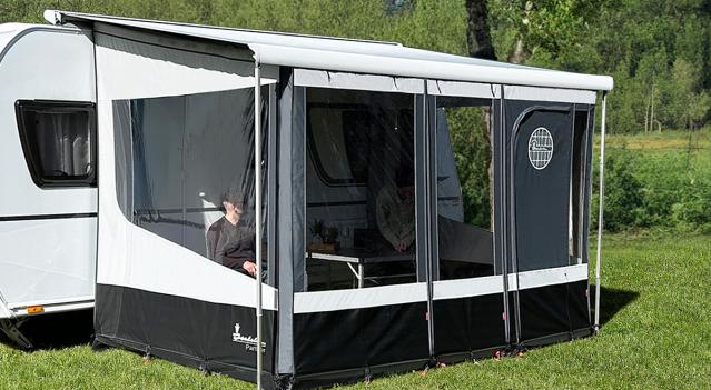 Skap et koselig uterom foran campingvognen eller kjøretøyet med Wind Front, som enkelt festes til markisen og gir ekstra ly og komfort.