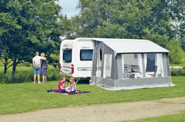 Universal 320 är ett året-runt-tält med tältduk i acryl och tak av PVC-belagd polyester.