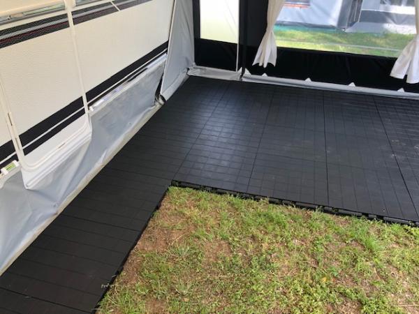 Når man oppholder seg mye i forteltet, er det fint at gulvet er plant, og at teppet ligger flatt. IsabellaFloor har mange fordeler. Det er lett å installere helt uten bruk av verktøy, da elementene er forsynt med låsetapper og settes sammen som et byggeklossystem. Det er lett å oppbevare og har lang levetid. IsabellaFloor har også det lille ekstra, at man kan tilkjøpe skråstykker og -hjørner, noe som ikke bare gir en flott finish, men også er en praktisk foranstaltning, f.eks. til rullestolbrukere eller familier med barnevogn.