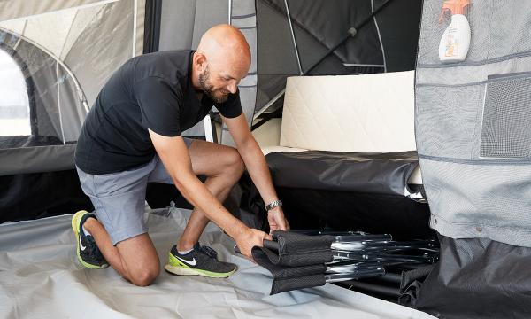 Koffertrommet monteres under sovekabinene på din Camp-let. På venstre side har koffertrommet bunn og er velegnet til bagasje du gjerne vil holde tørr.