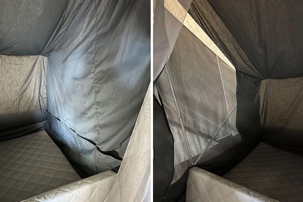 Denne sovekabinen passer på venstre side (toppen) på Camp-let Passion. Sovekabinen er mørkt, så du sjeneres minst mulig av lys og tidlig morgensol. I tillegg har den integrert myggnetting, som gir deg gode muligheter for ventilasjon.